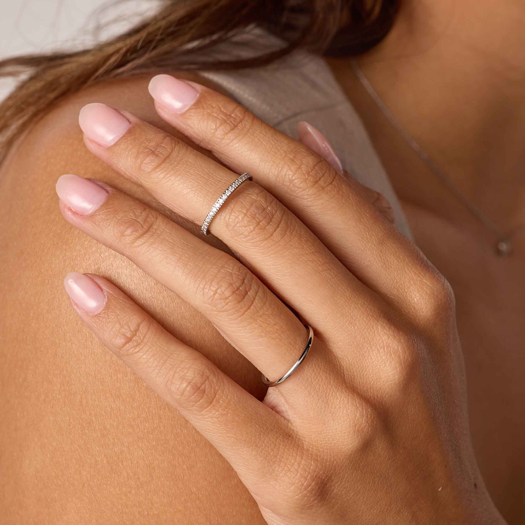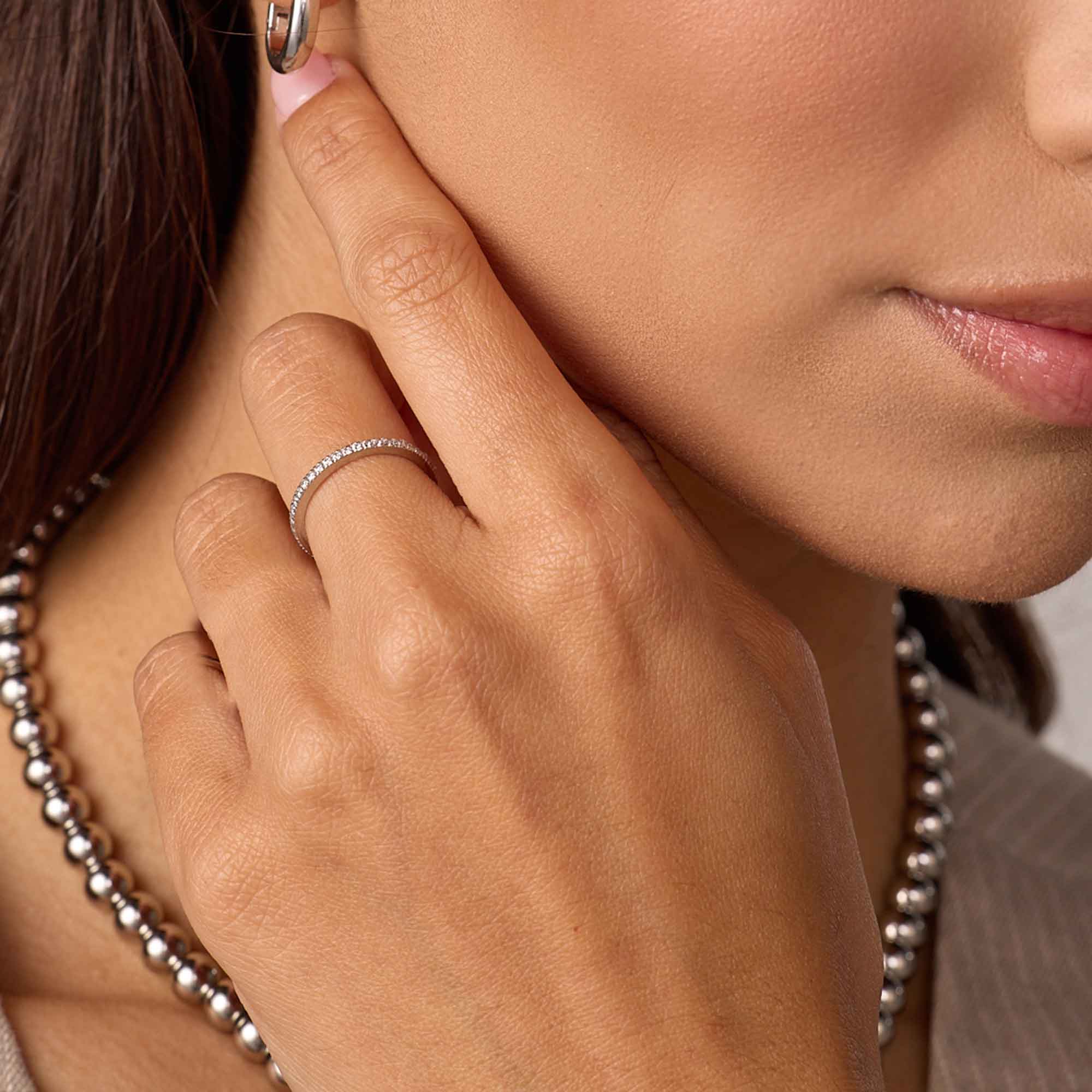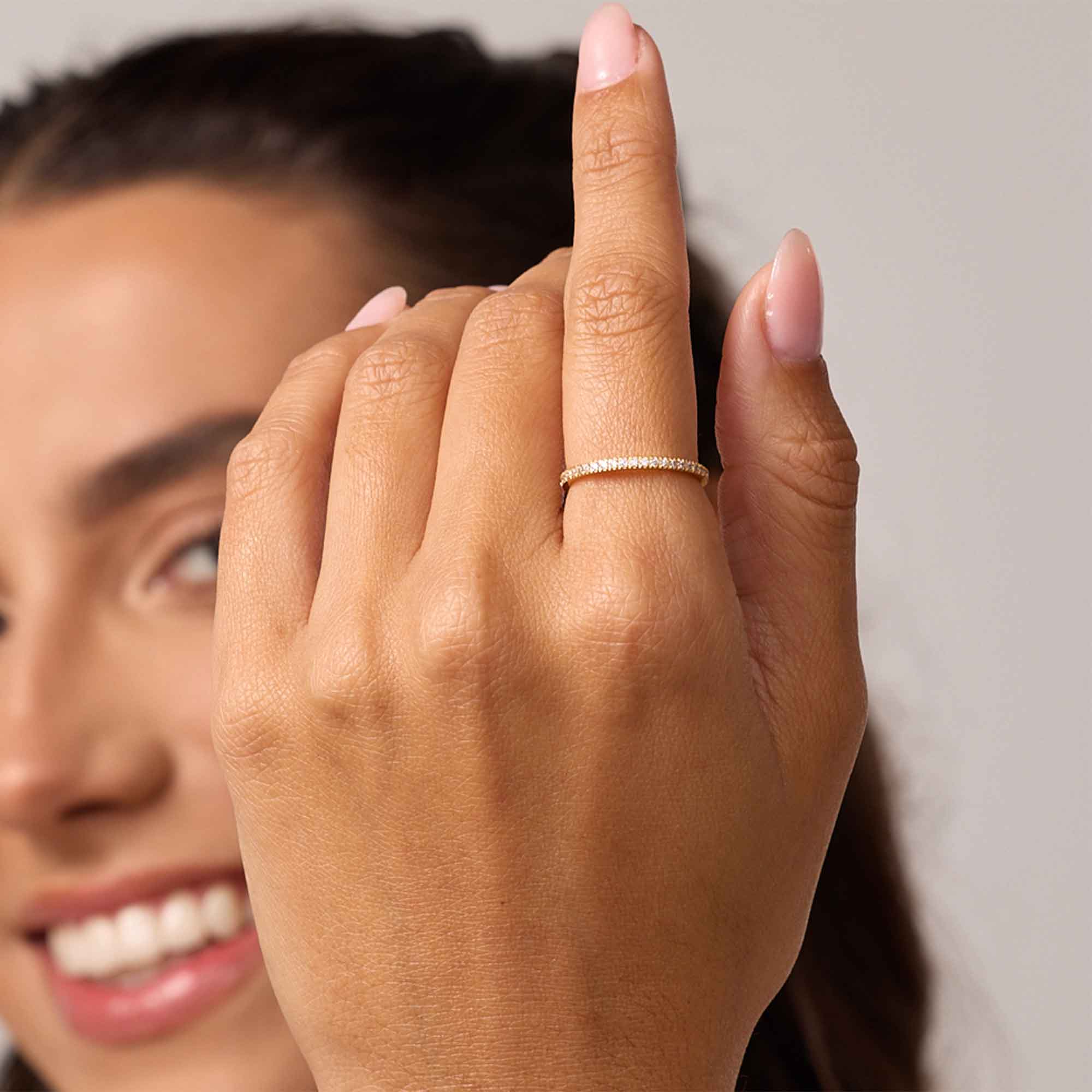 El Anillo Alis es esa pieza versátil y atemporal, se adapta a todo: puede acompañar tus looks más casuales o convertirse en ese detalle brillante. Su diseño delgado, rodeado de pequeños cristales, logra el equilibrio perfecto entre delicadeza y elegancia.