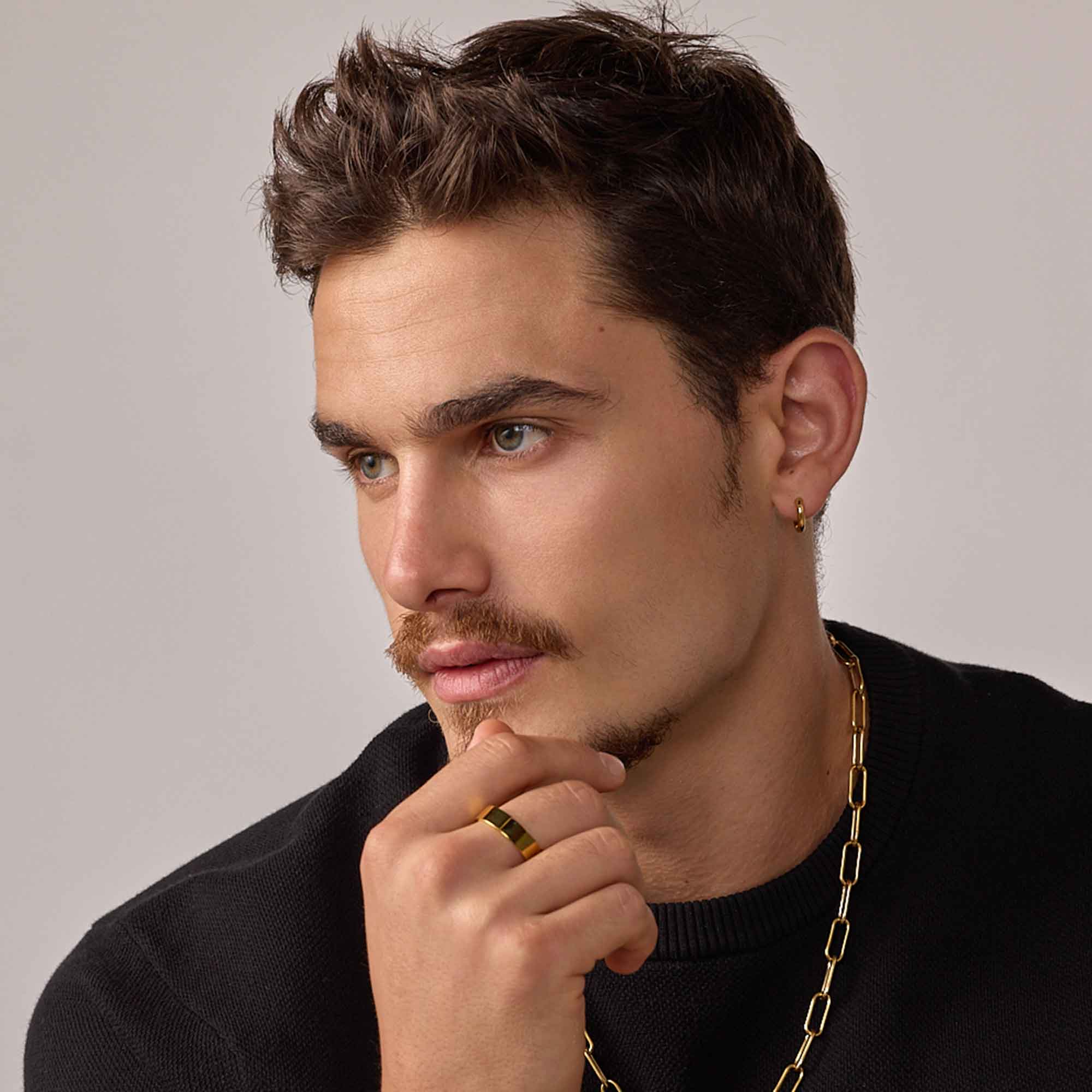 El Anillo Magnus está hecho para durar, sin perder estilo. Su diseño limpio y robusto transmite fuerza, mientras que el acabado pulido le da ese brillo que no pasa desapercibido. Su presencia está en la forma: sólida, masculina, directa. Es una joya que no se deforma y no te falla. Ideal para hombres que valoran lo esencial, pero con carácter.