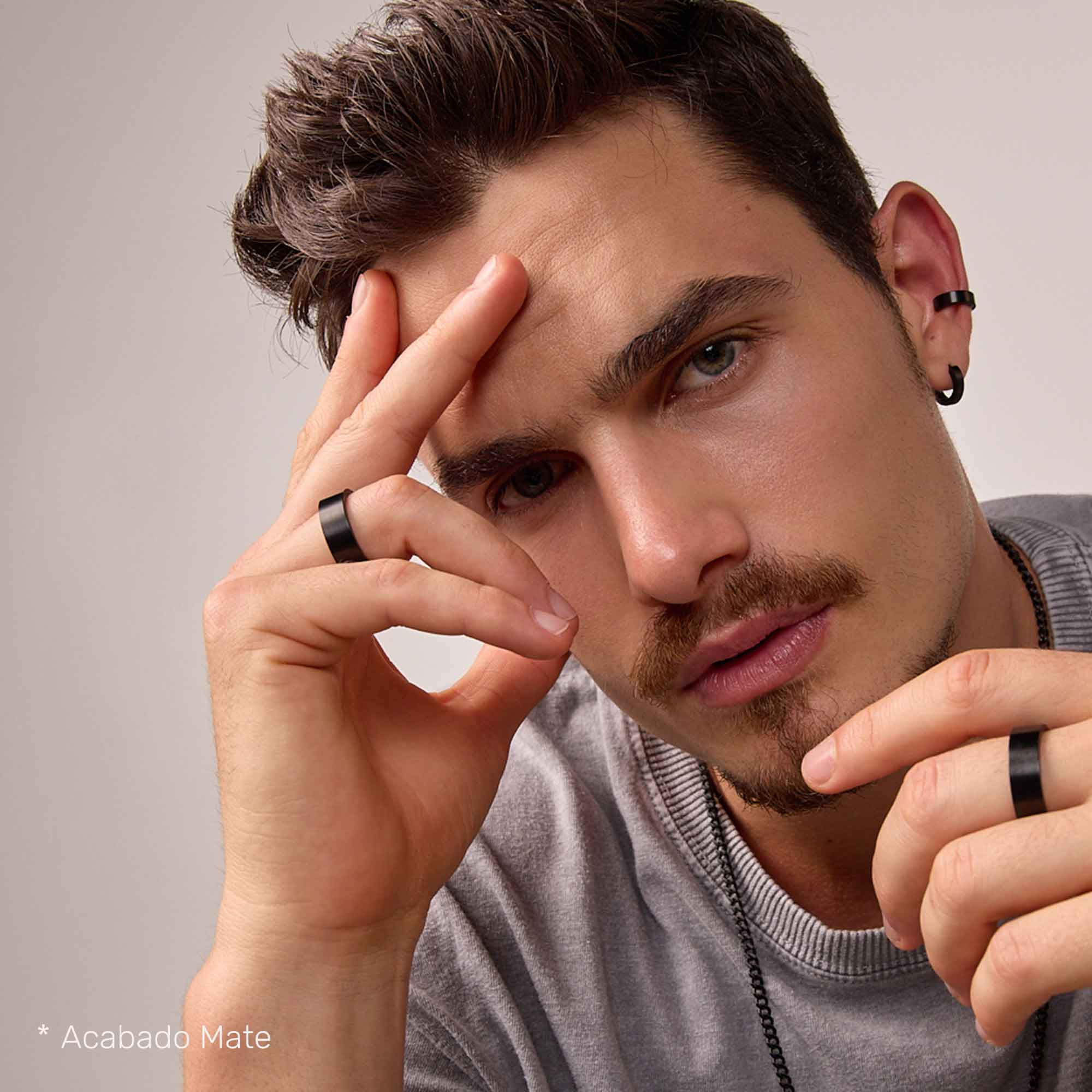 El Anillo Nox es una pieza que habla por sí sola: sobria, moderna y con una presencia innegable. Su diseño de banda ancha combina fuerza y elegancia en equilibrio perfecto. La superficie en acabado mate refleja una estética limpia, ideal para hombres que prefieren lo esencial, pero con actitud.