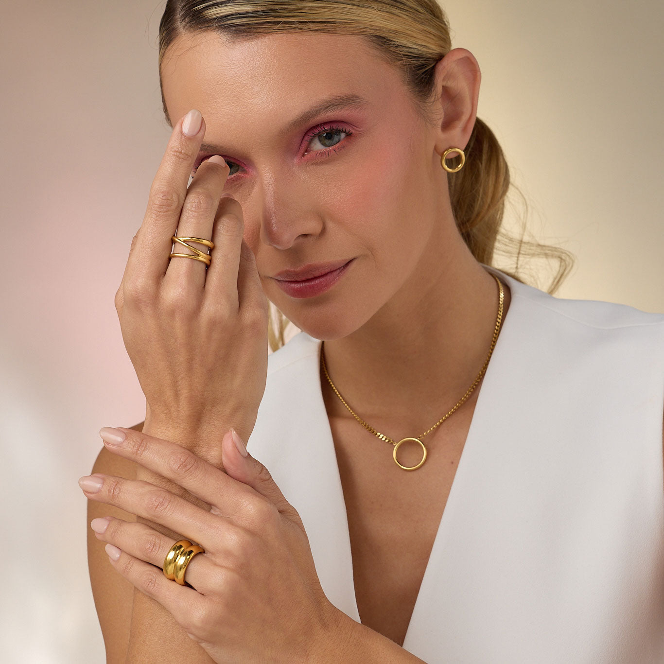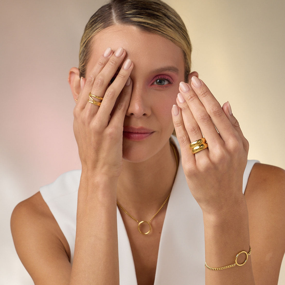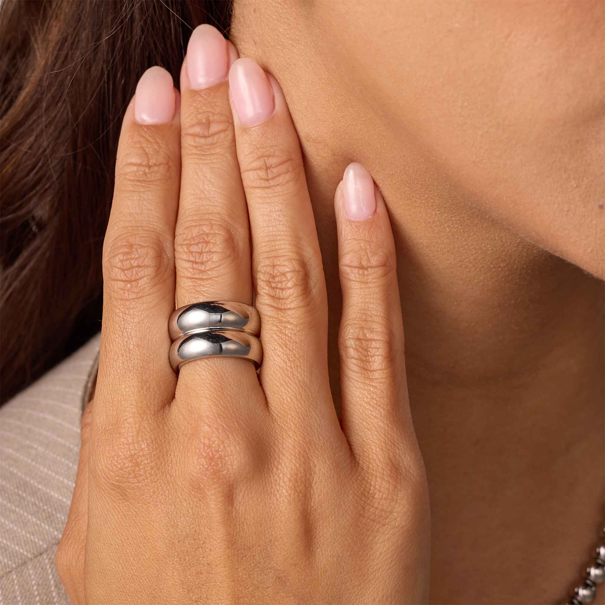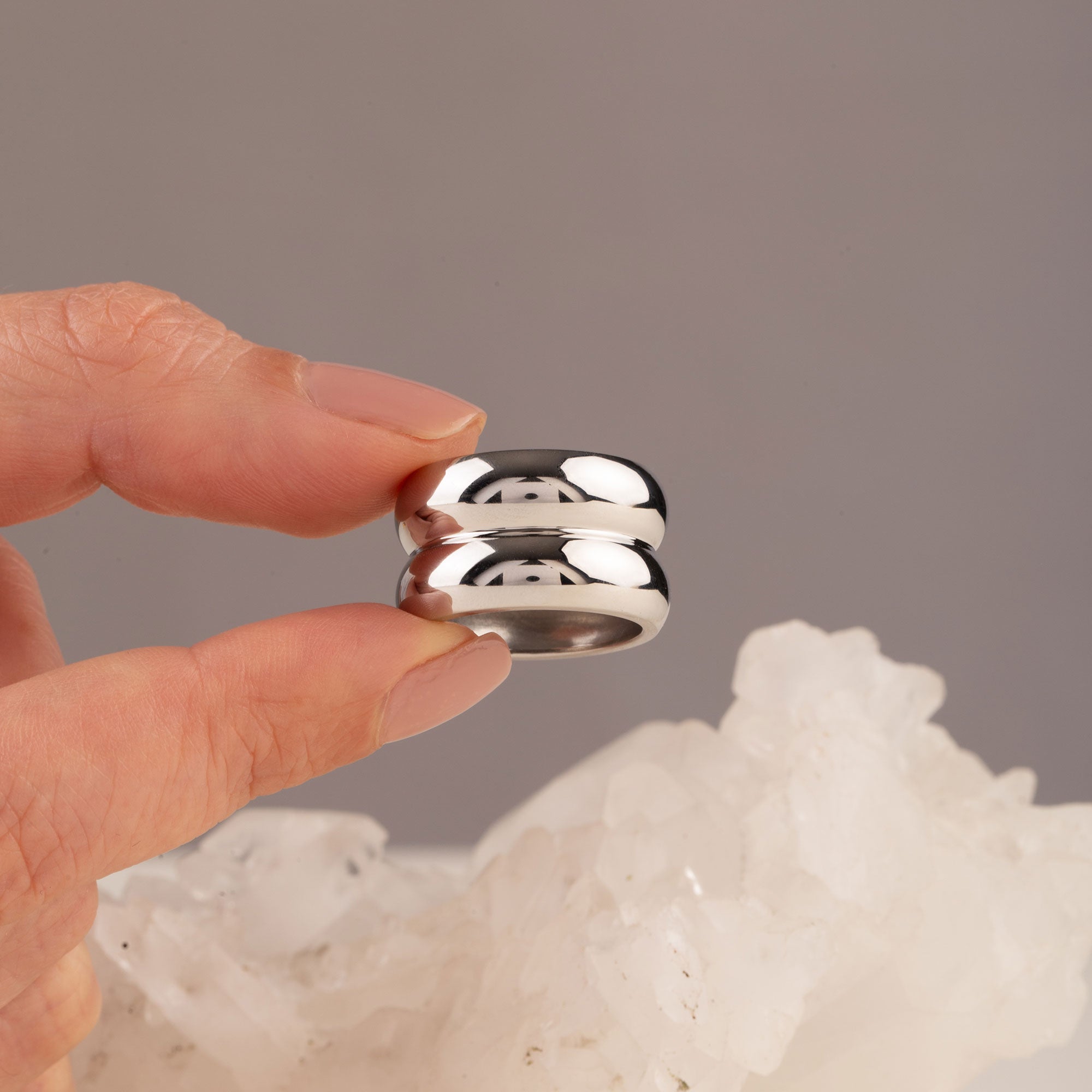 Con acabado liso y brillante, y bordes suavizados para mayor comodidad, este anillo se convierte en protagonista de cualquier look. Úsalo para elevar un outfit minimalista, dar carácter a un atuendo de oficina o aportar elegancia a la noche.