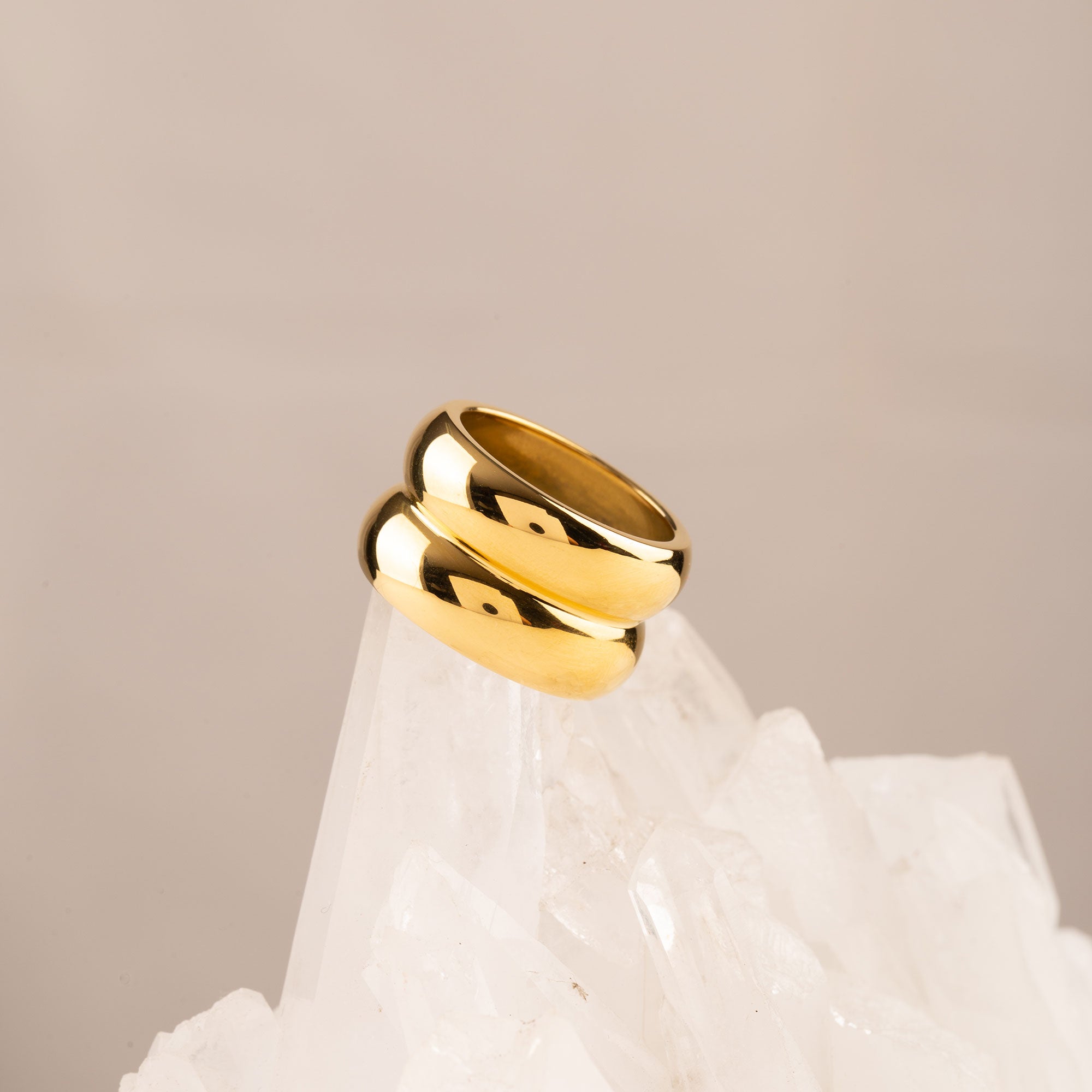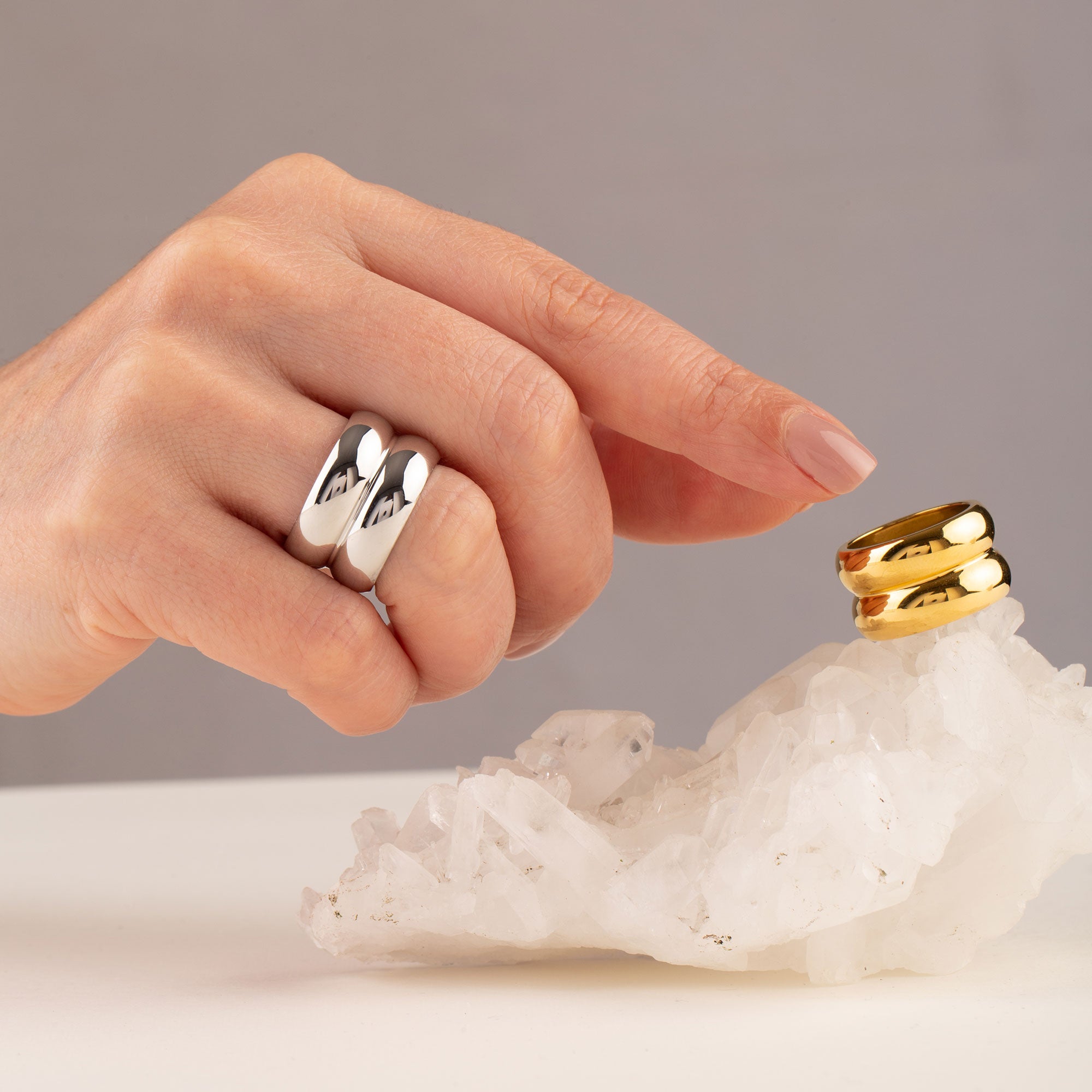 El Anillo Terra es una pieza poderosa y elegante que equilibra fuerza y sofisticación. Aunque está hecho de una sola pieza, su diseño crea la ilusión de dos aros gruesos paralelos, logrando un efecto moderno y llamativo.