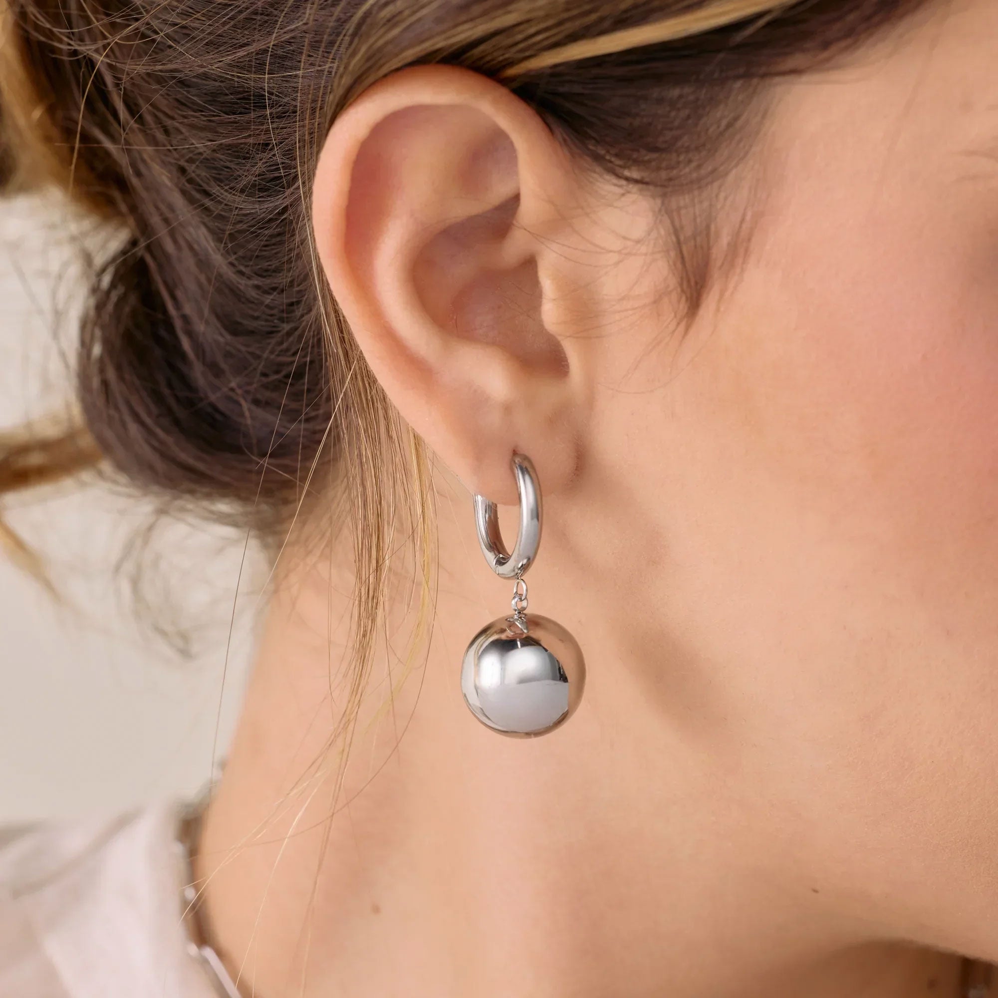 Fabricadas en acero quirúrgico hipoalergénico, son resistentes al agua y pensadas para uso diario. Su acabado brillante realza la simplicidad del diseño, logrando un efecto versátil que se adapta tanto a atuendos casuales como a ocasiones especiales.