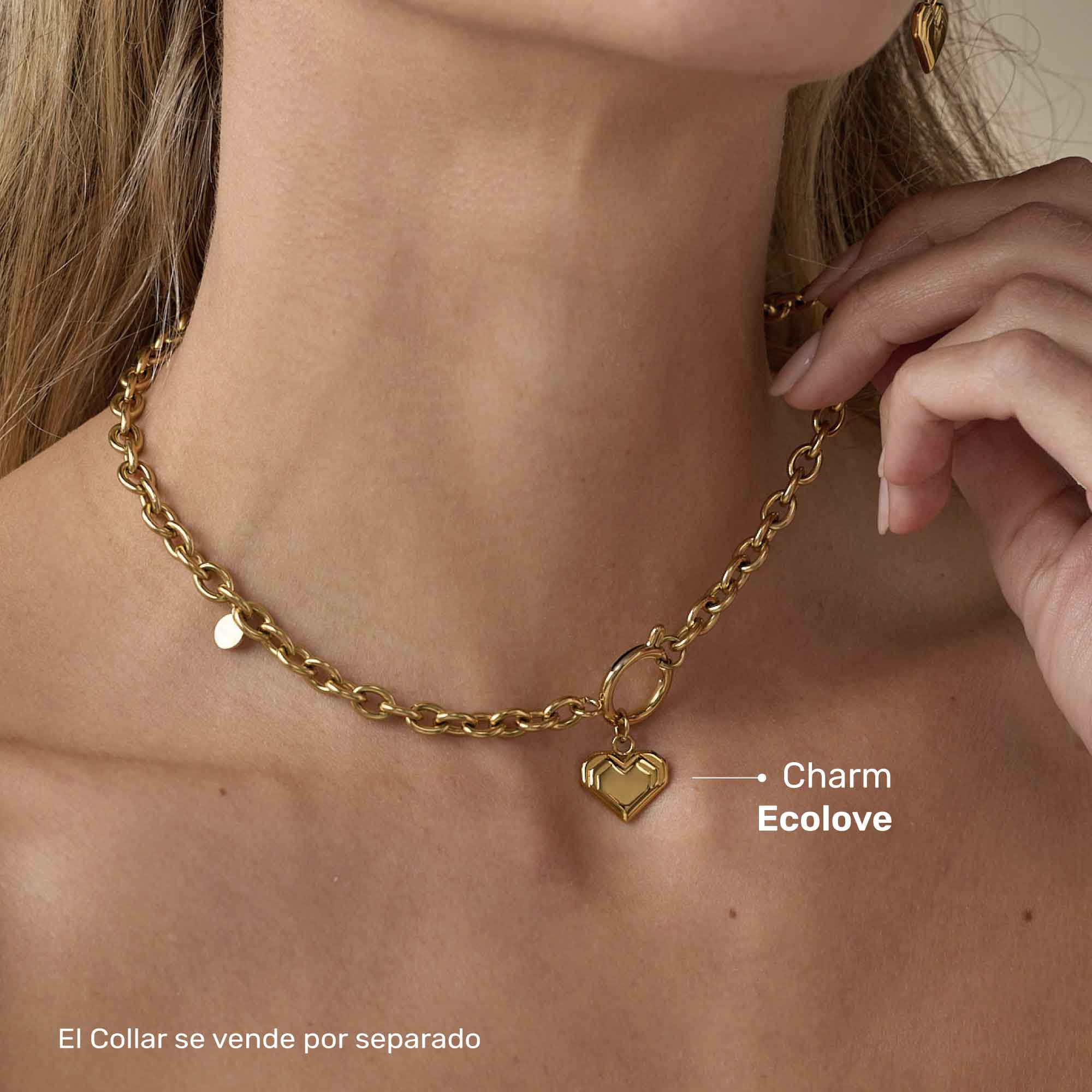 El Charm Ecolove es una joya moderna y llena de simbolismo, creada para quienes aman los detalles con estilo y significado. Elaborado en acero quirúrgico dorado, presenta un corazón facetado con líneas geométricas que juegan con la luz y reflejan un brillo elegante y sutil.