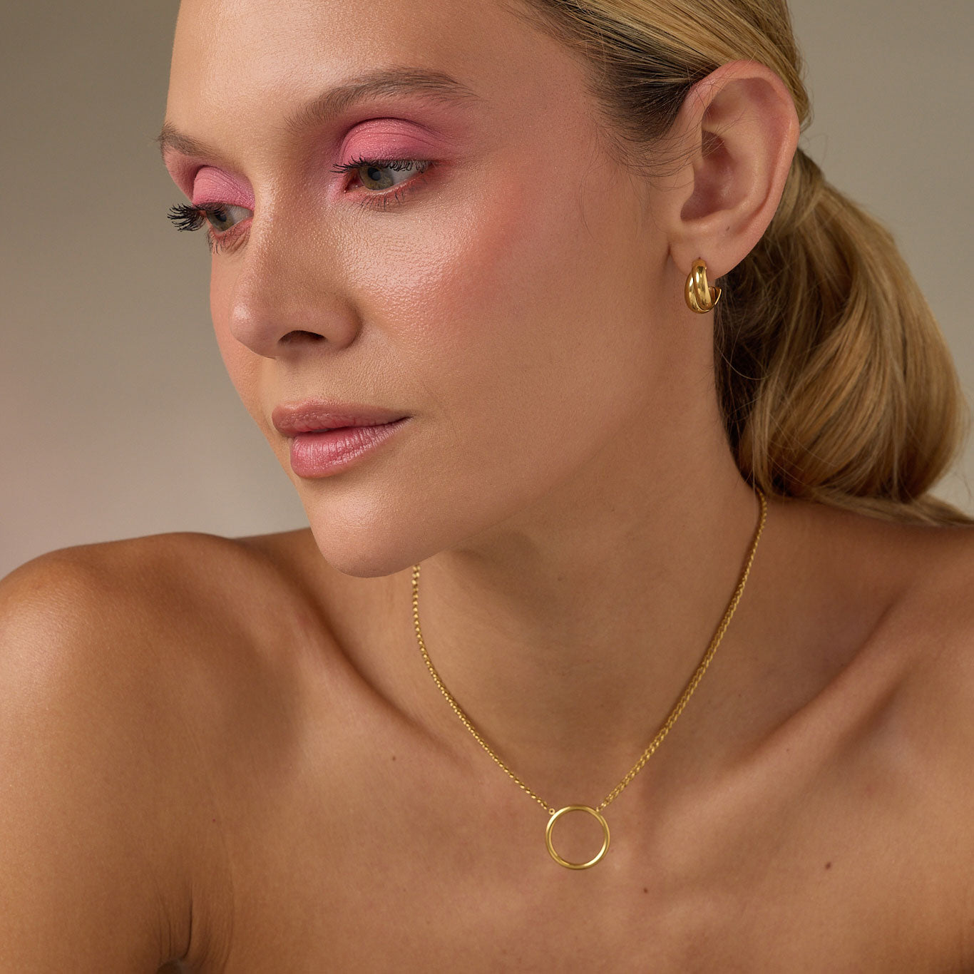 El Choker Nova es la joya que combina simplicidad y carácter. Su cadena se ajusta con elegancia a la base del cuello, mientras un dije redondo y perfectamente pulido se convierte en el centro de atención. El acabado ultrabrillante refleja la luz de manera sutil, creando un efecto sofisticado que eleva cualquier look.