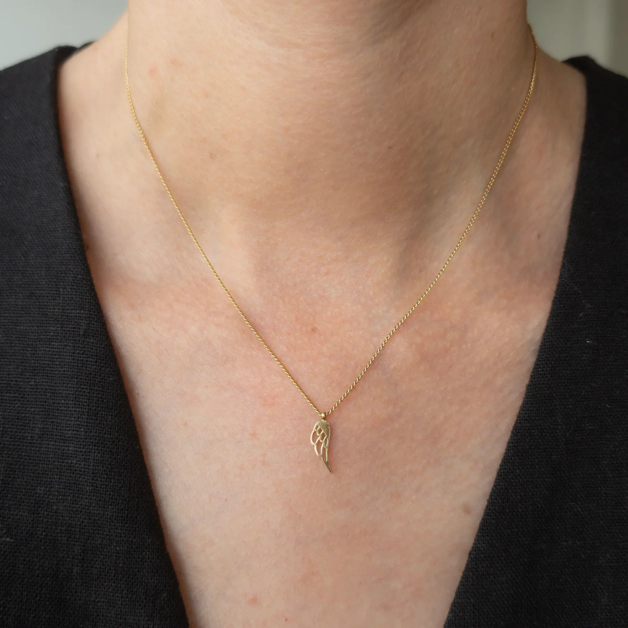 El Collar Ícaro presenta un dije en forma de ala, con un diseño calado que evoca ligereza, movimiento y libertad.  Pensado para mujeres que buscan una joya delicada, significativa y versátil. No solo adorna: eleva, conecta y refleja el deseo de volar alto con autenticidad