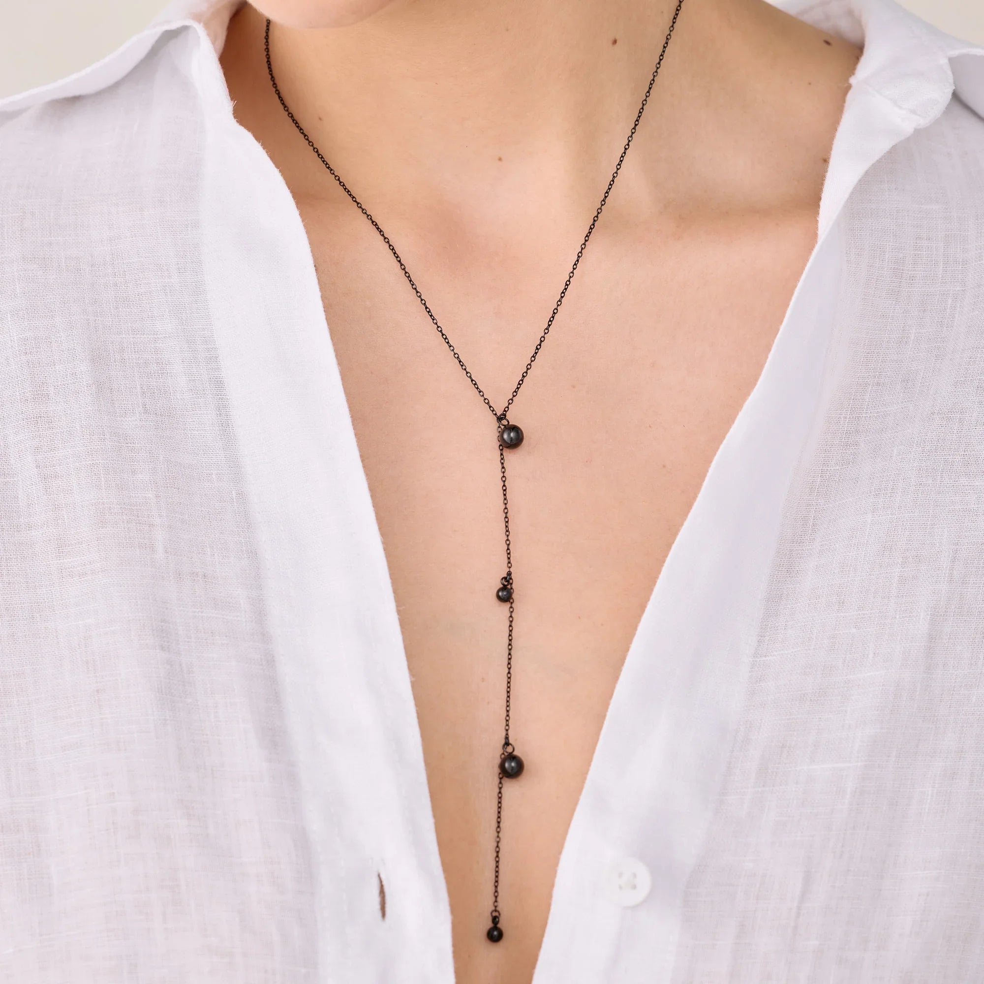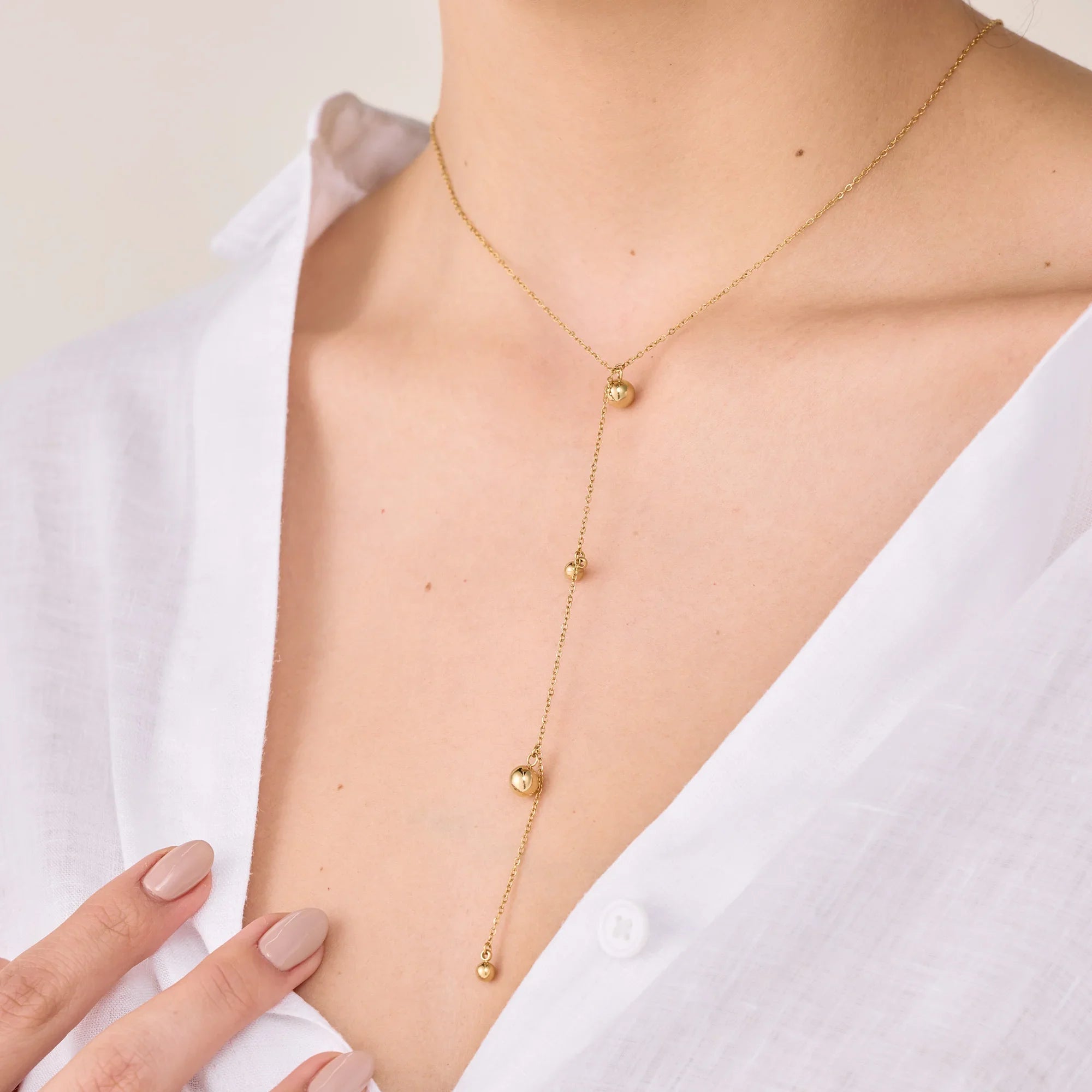 El Collar Zamara Long combina una cadena con cuentas esféricas distribuidas en intervalos precisos. Su diseño vertical crea una silueta limpia y elegante que se desliza con suavidad sobre el escote. Es una joya que transmite equilibrio, movimiento y serenidad: como un trazo que acompaña sin interrumpir.