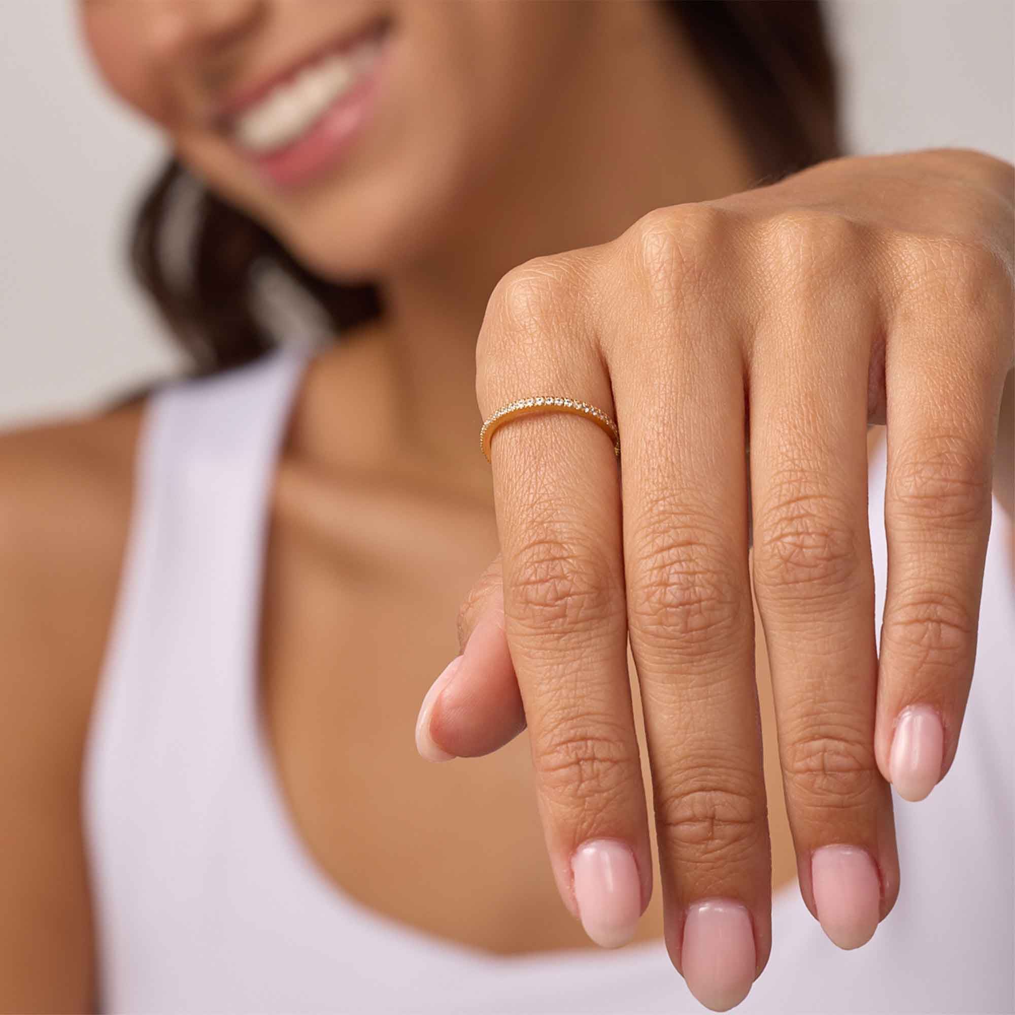 El Anillo Alis es esa pieza versátil y atemporal, se adapta a todo: puede acompañar tus looks más casuales o convertirse en ese detalle brillante. Su diseño delgado, rodeado de pequeños cristales, logra el equilibrio perfecto entre delicadeza y elegancia.