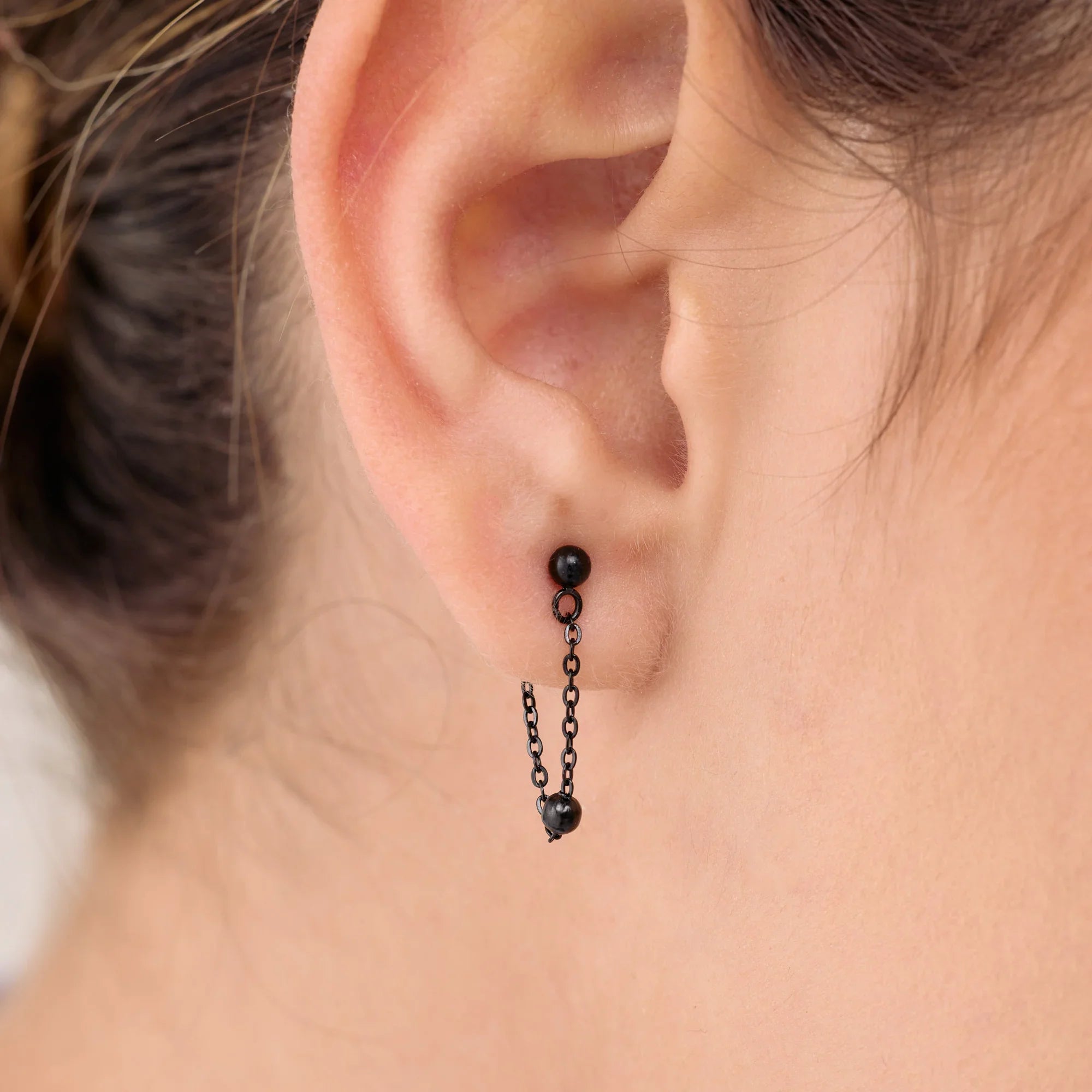 Los Aretes Bodena son una combinación perfecta entre delicadeza y emoción: un topito unido por una cadena fina a un dije de bolita liso que se balancea suavemente con cada movimiento.