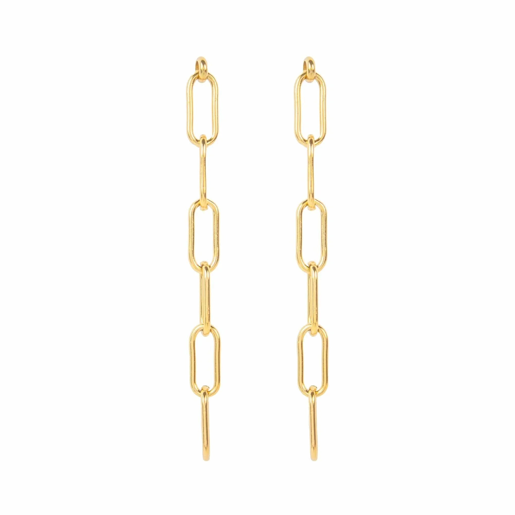 Los Aretes Eslabón Long son una declaración audaz de estilo contemporáneo: largos, lineales y compuestos por seis eslabones ovalados que cuelgan con elegancia desde el lóbulo hasta más allá del cuello. Su diseño minimalista y geométrico aporta una estética moderna y poderosa, ideal para looks sofisticados o moderno.