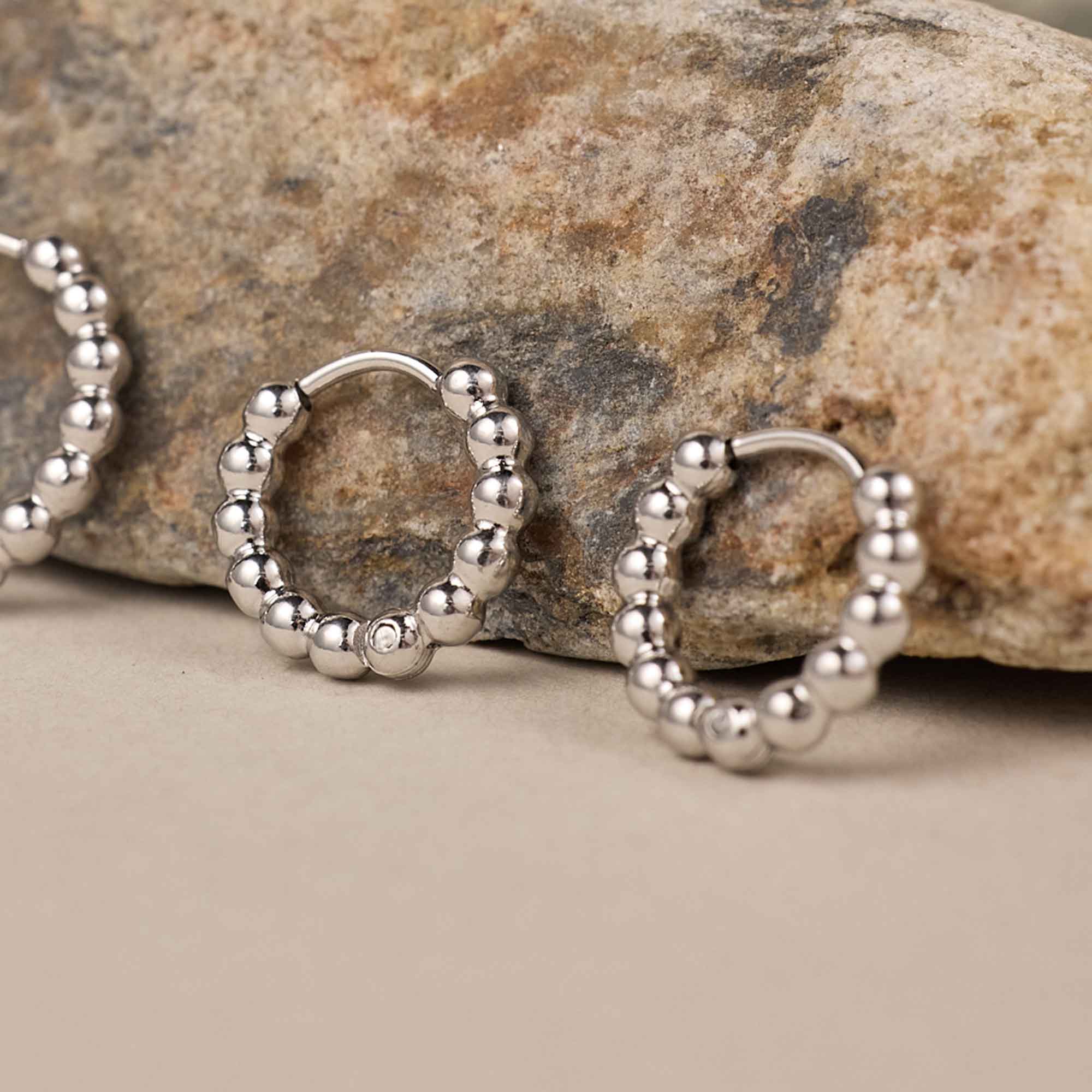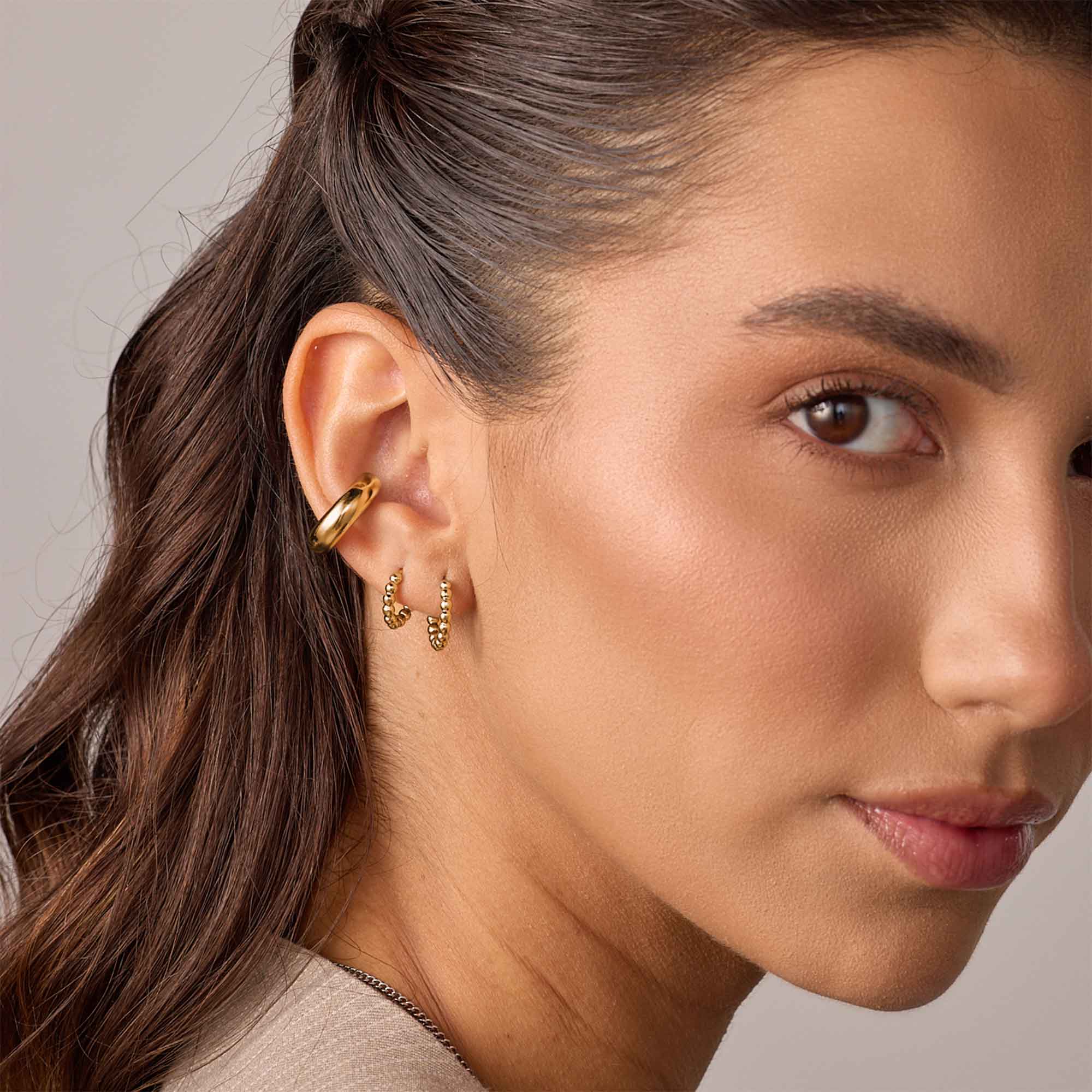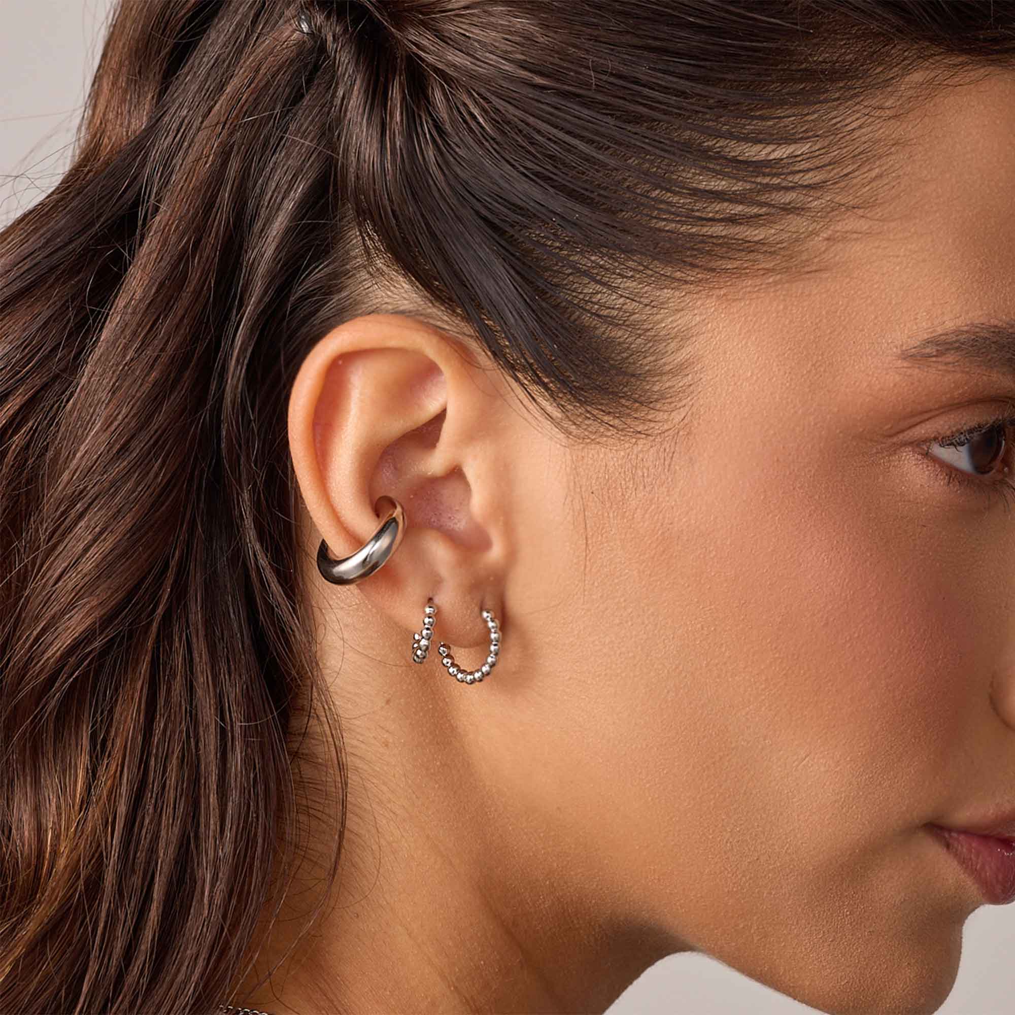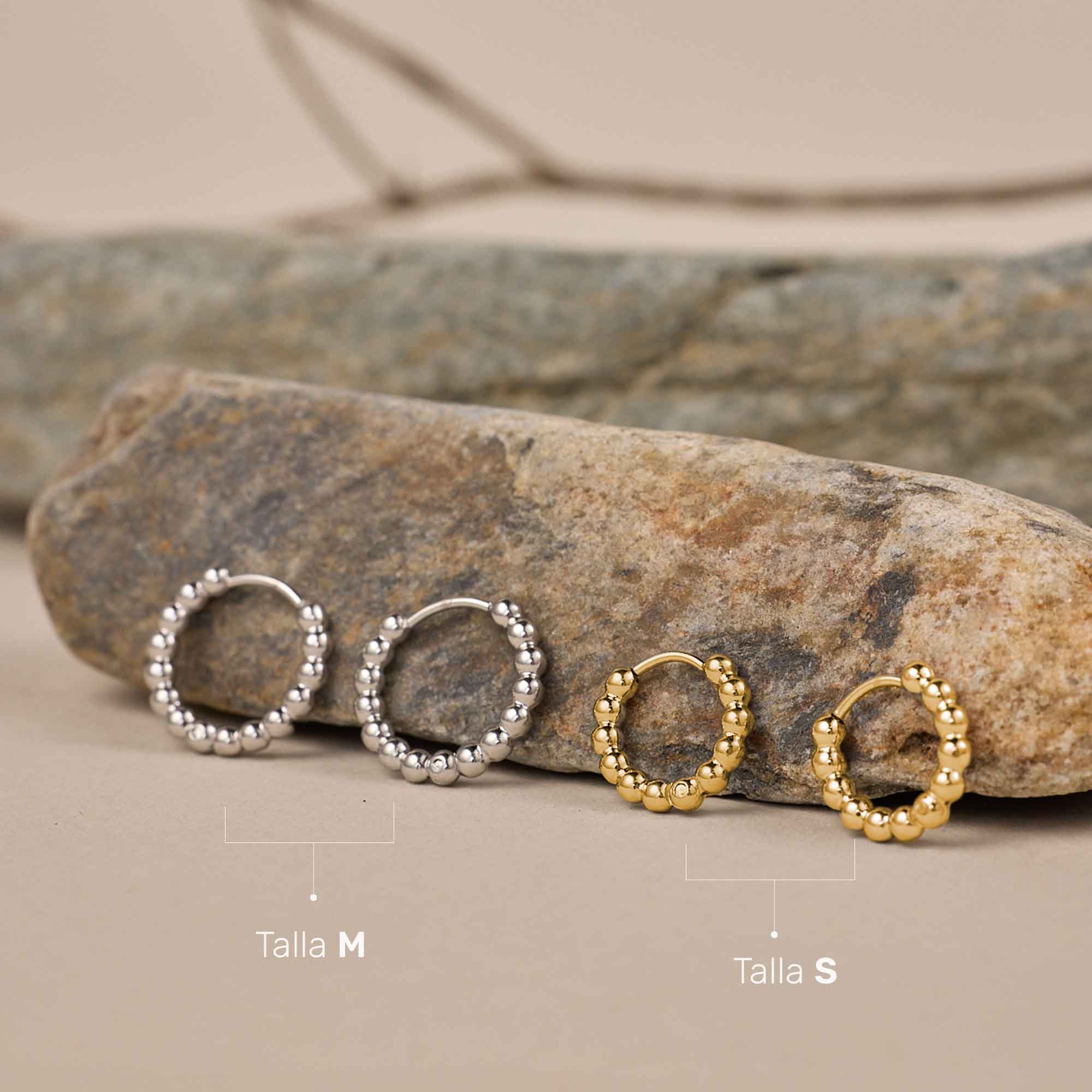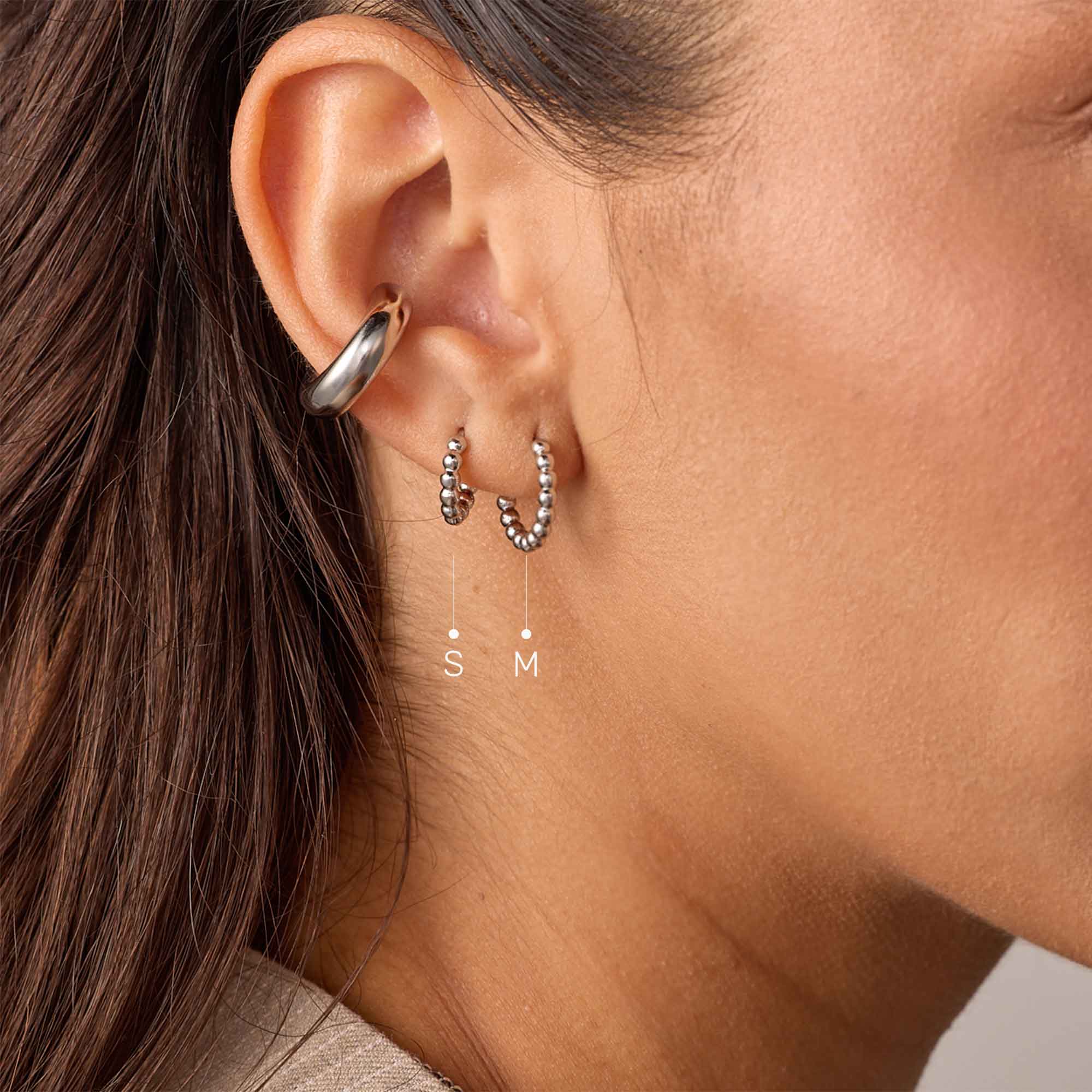 Las Candongas Bubble y su diseño con pequeñas esferas unidas crea una textura delicada y moderna que aporta brillo con sutileza. Son livianas, cómodas y perfectas para quienes prefieren accesorios versátiles y para el día a día. Disponibles en dos tamaños: la talla S, perfecta para la segunda perforación, y la talla M, ideal para usar en la principal.