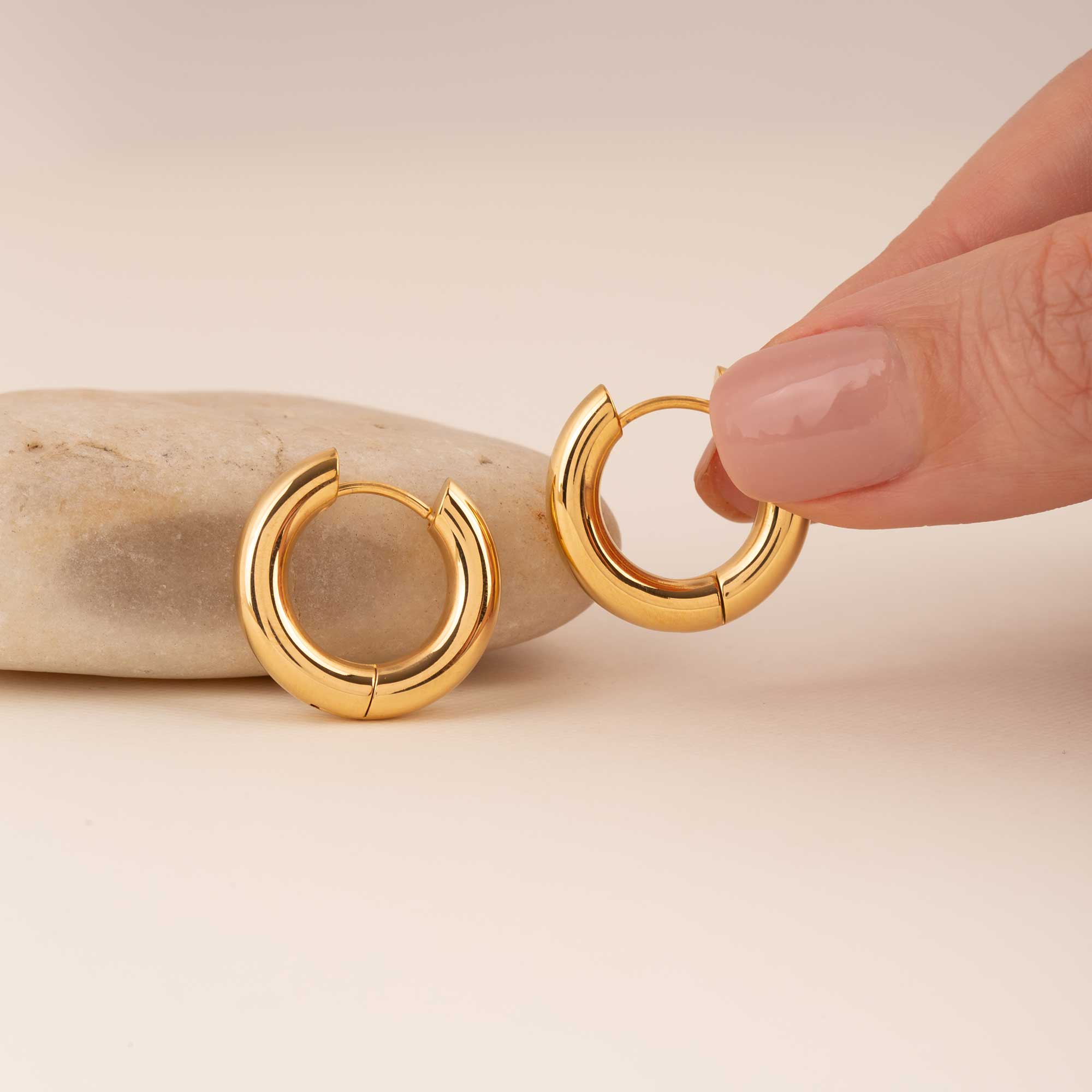Las Candongas Imponente tienen tres opciones de tamaño de aros tradicionales con un poco más de grosor. No te preocupes, casi no pesan y por esto se adaptan a todos los momentos que pasas durante el día. Cambia de joyas y siéntete súper cómoda usando Blunua.
