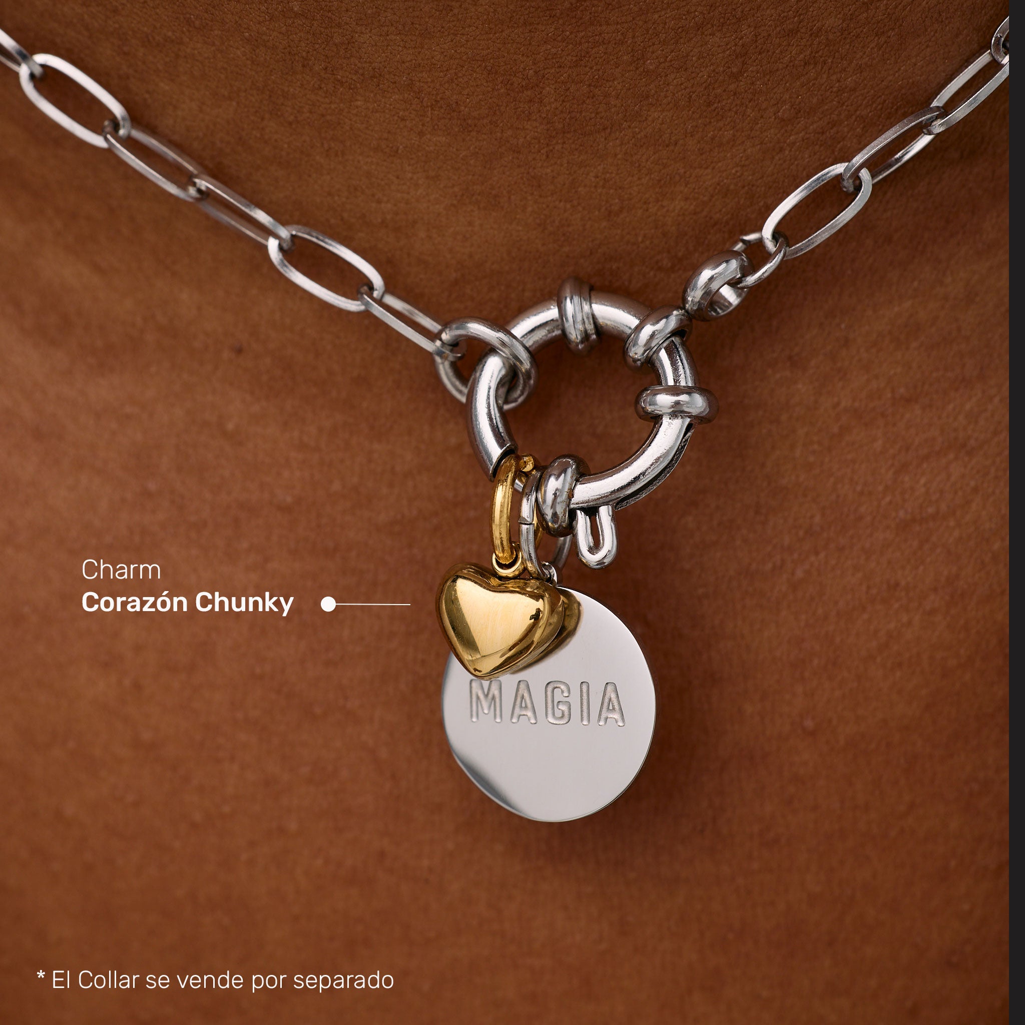 Este delicado charm Corazon Chunky es el complemento perfecto para agregar un toque de amor y ternura a tu pulsera o collar lock. Su diseño liso y brillante refleja la luz con sutileza, convirtiéndolo en un detalle ideal para cualquier estilo. Además, su material hipoalergénico asegura durabilidad y comodidad, perfecto para usar todos los días. Combínalo con otros charms o úsalo solo para un look simple