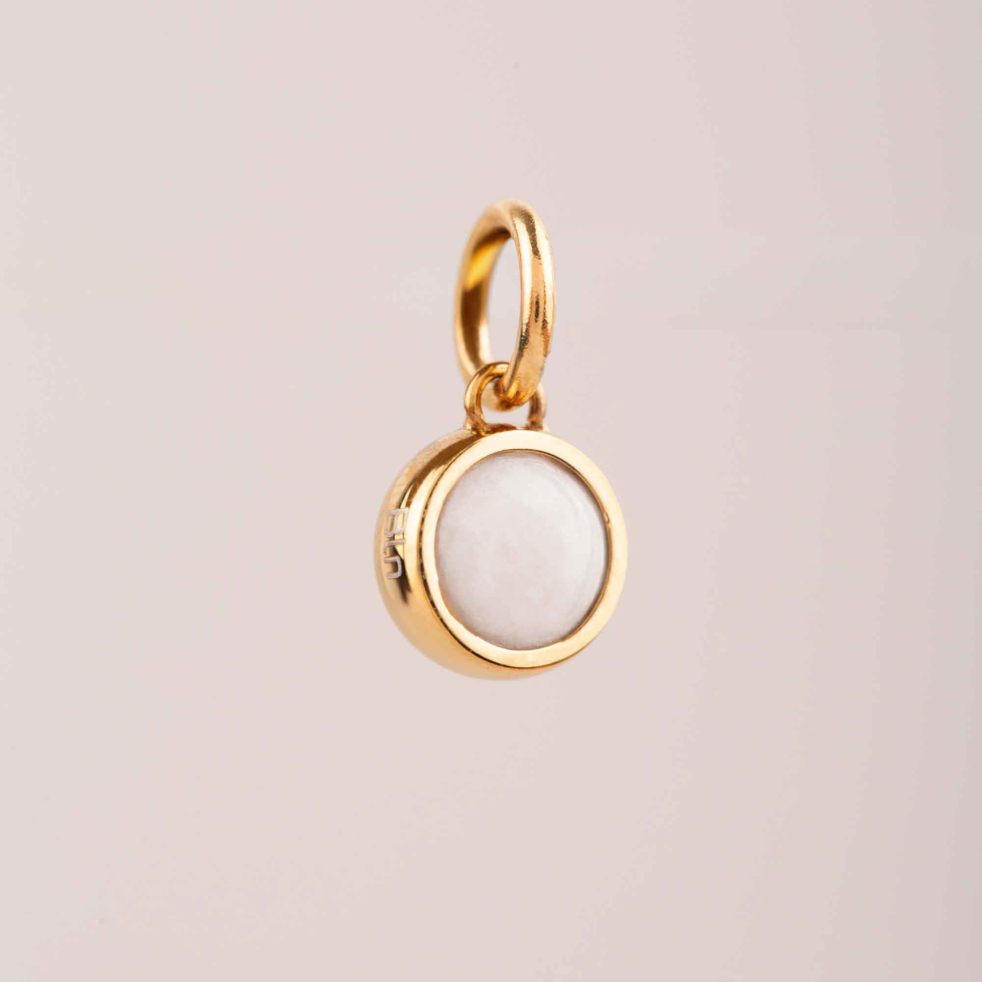 Su forma circular y su acabado delicado hacen que sea una pieza versátil, ideal para llevar como protagonista o en combinación con otros charms. Con un aro superior seguro y funcional, se integra fácilmente en pulseras, collares, tobilleras o incluso aretes tipo charm, adaptándose a diferentes estilos y momentos.