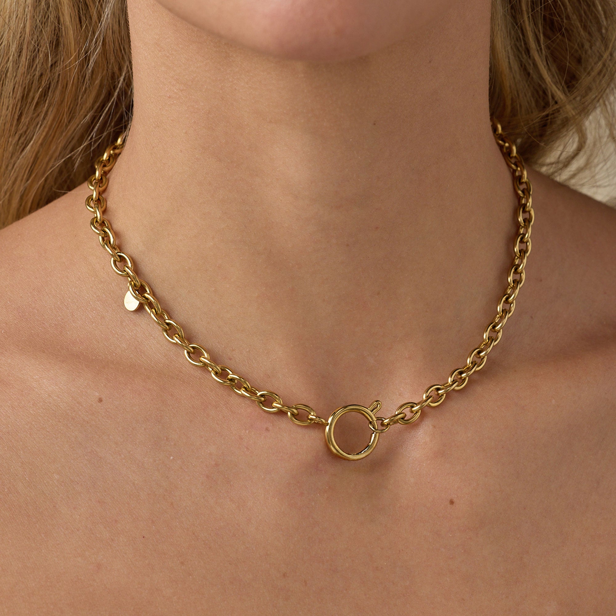 El Choker Albus es una pieza que equilibra fuerza y elegancia en un solo diseño. Con eslabones entrelazados tipo cadena clásica, destaca por su estructura firme y moderna que abraza el cuello con estilo y seguridad.  Ideal para looks urbanos, minimalistas o sofisticados, este choker puede ser protagonista cuando lo llevas solo, o transformarse en moderno cuando lo combinas con collares más largos o charms.