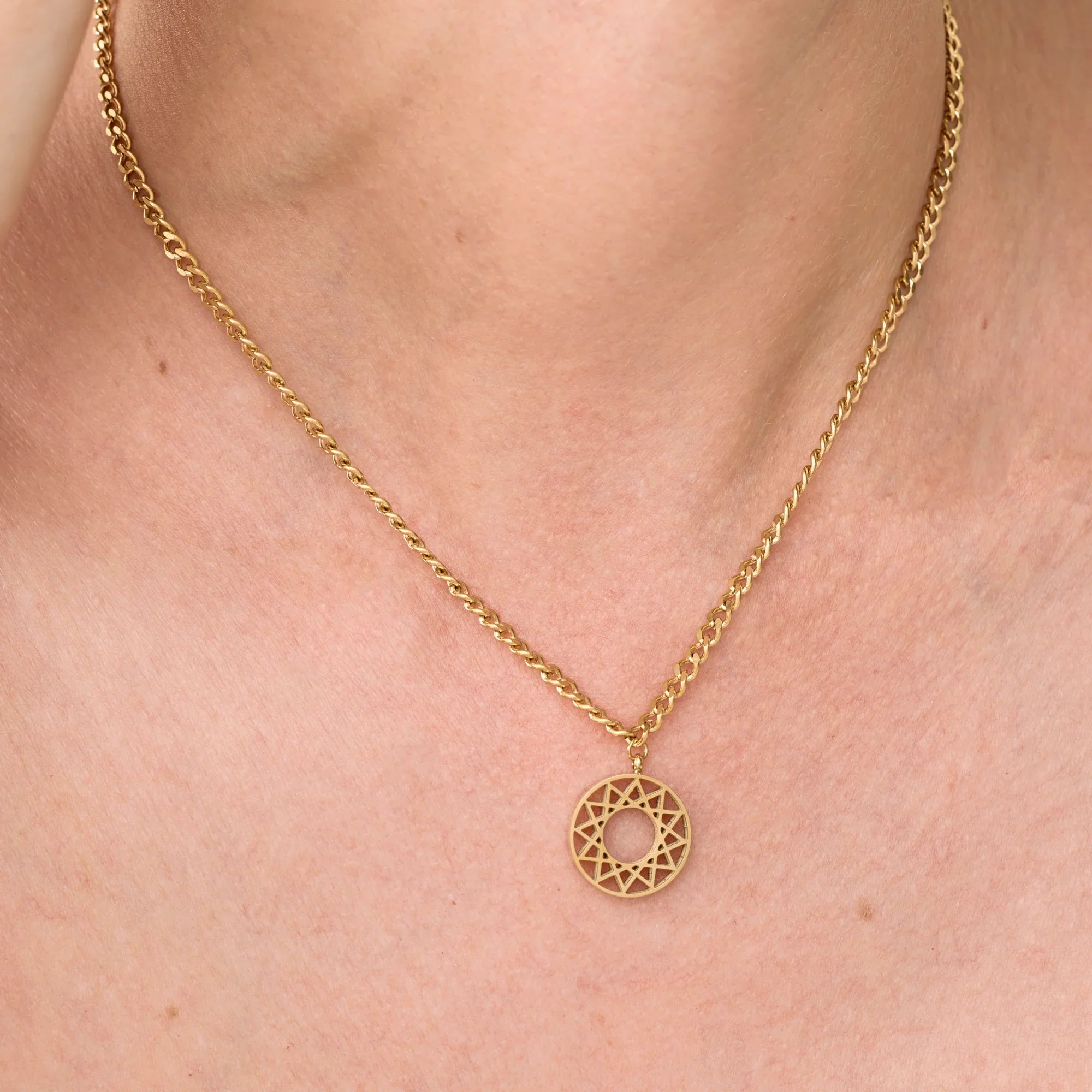 El Collar Mercury es una joya que fusiona estética moderna con simbolismo sutil. Su dije circular con patrón de triángulos evoca equilibrio, luz y armonía. La cadena y el acabado pulido aportan un estilo contemporáneo, ideal para mujeres que buscan un accesorio con carácter, versátil y con significado. Perfecto para looks minimalistas o alternativo.
