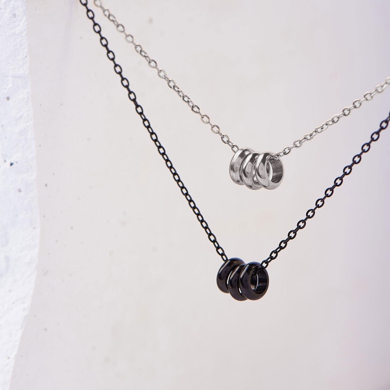 El Collar Orbit presenta tres anillos metálicos alineados sobre una cadena creando una composición minimalista y moderna. Su diseño evoca órbitas que se cruzan con equilibrio y estilo, como símbolos de conexión, ritmo y energía constante.  No solo adorna: estructura, acompaña y refleja tu centro en movimiento