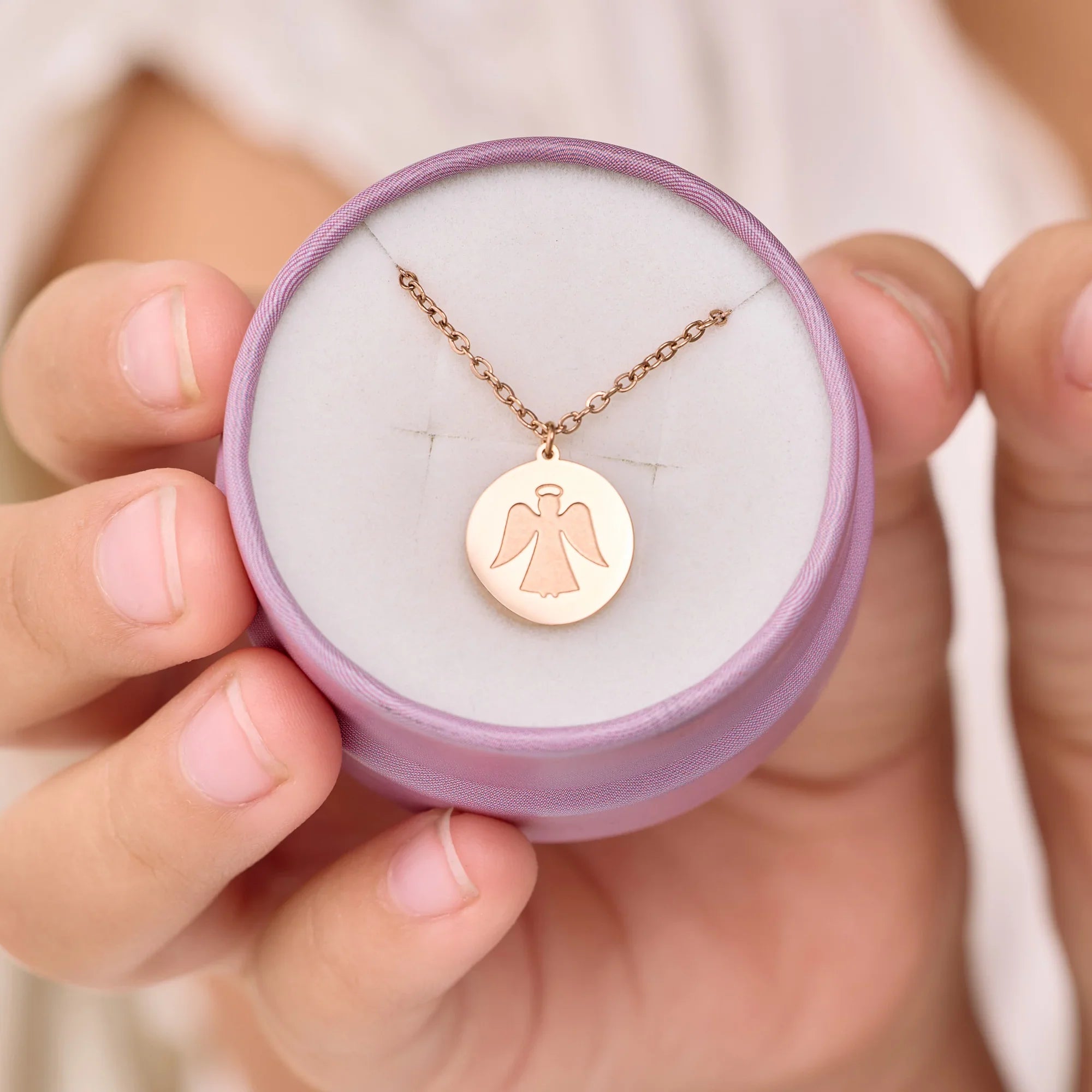 El Collar Protector es una joya pensada para acompañar con significado. Su dije redondo con grabado de ángel transmite protección, ternura y conexión emocional. El acabado pulido refleja la luz con suavidad, mientras la cadena delicada se adapta cómodamente al cuello infantil.  Es ideal para el día a día o como detalle especial en momentos importantes.