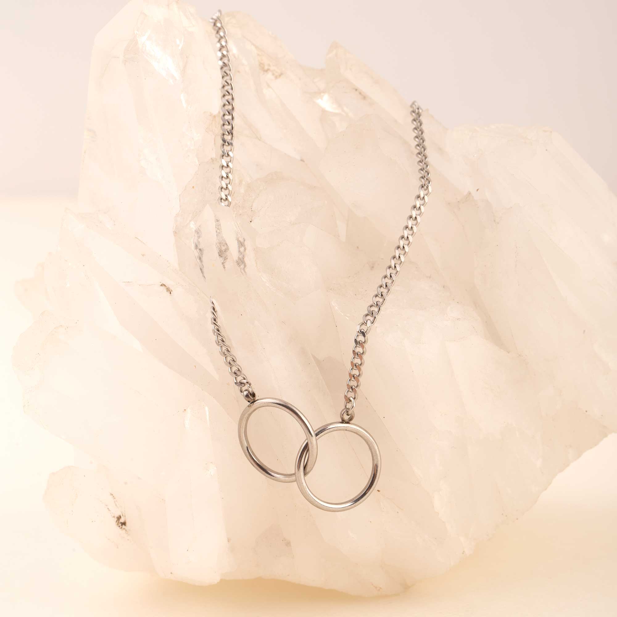 El Collar Unus representa la unión y el equilibrio, recordándote lo esencial en cada momento. Una pieza atemporal, cómoda y elegante que siempre suma estilo y significado a tu look. Su diseño delicado combina una cadena fina con dos aros entrelazados al centro, un símbolo eterno de conexión.