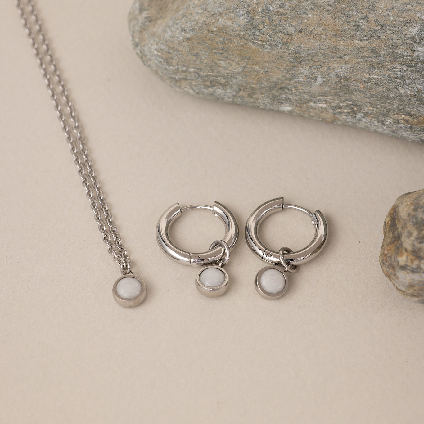 Llevar el set completo potencia su efecto: el collar aporta delicadeza al escote, mientras las candongas enmarcan el rostro con suavidad. Juntas, elevan cualquier outfit con una estética minimalista que respira serenidad y estilo.