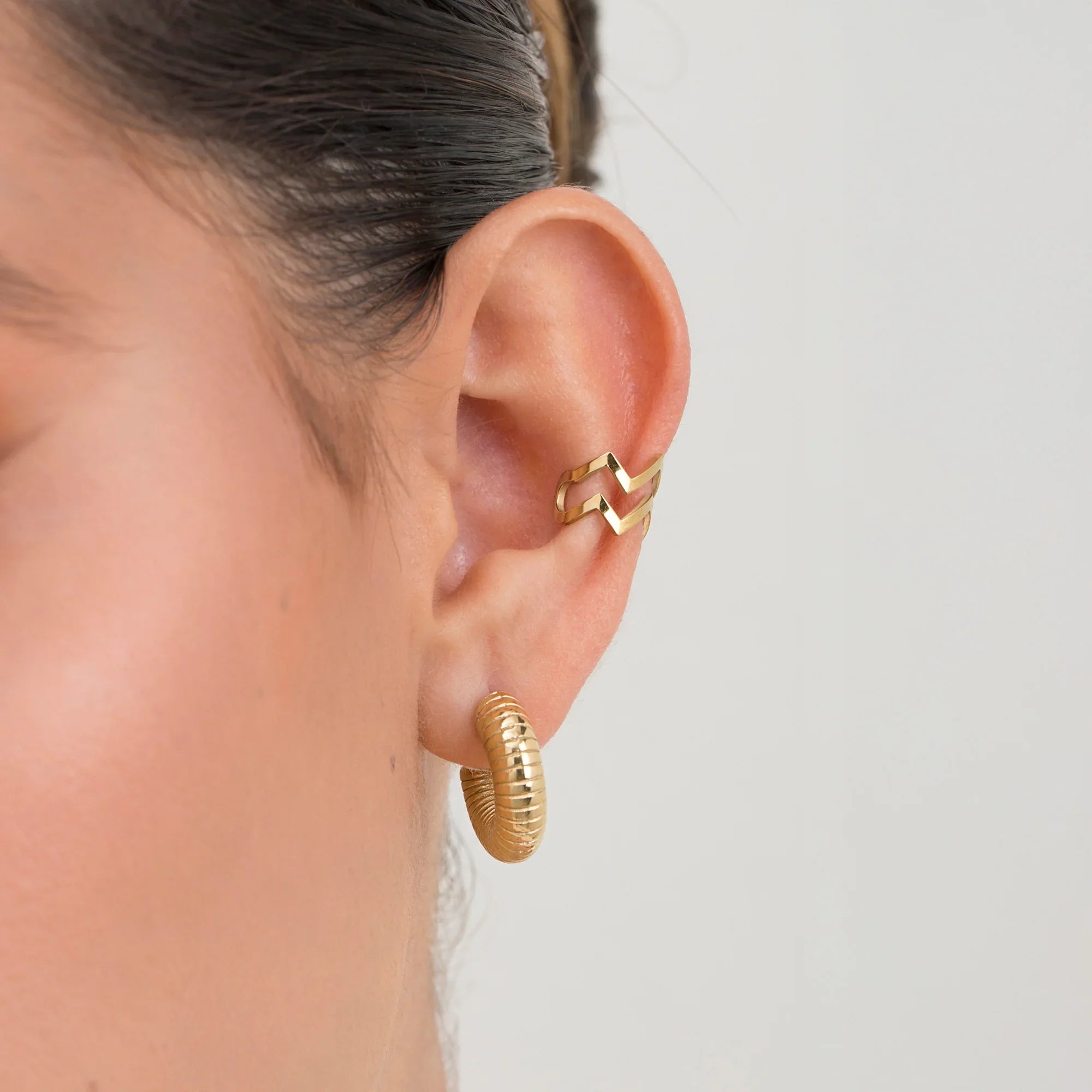 Este accesorio es ajustable, puedes usarlo en la parte alta o media de la oreja.