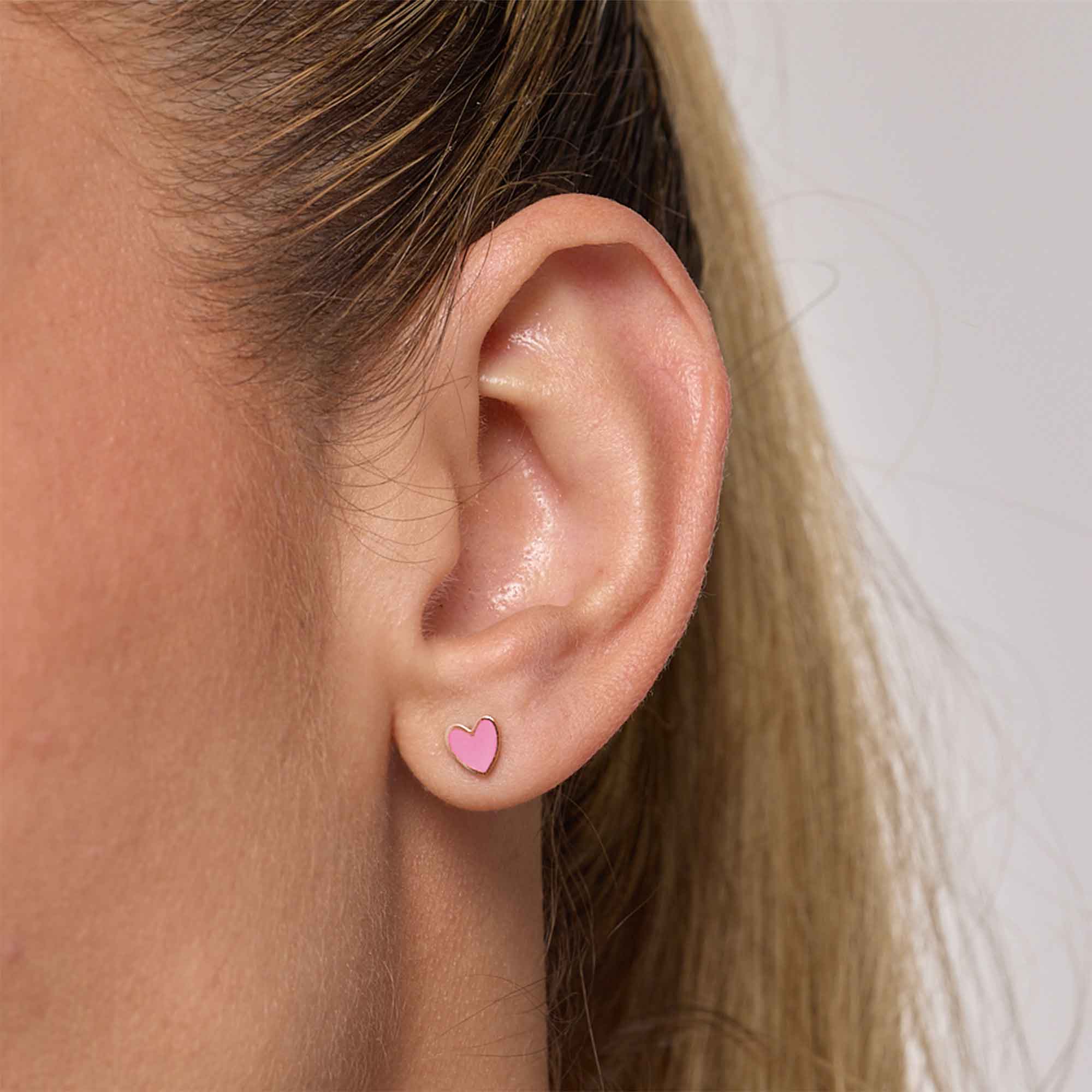 Los Topitos de Seguridad Rose combinan funcionalidad y dulzura en una pieza esencial. Su diseño en forma de corazón, con un tono rosa claro y acabado brillante, suaviza el rostro con delicadeza y ternura. Son perfectos para quienes buscan comodidad sin perder ese toque romántico y femenino. Puedes llevarlos como protagonistas o mezclarlos con otros aretes pequeños para crear un estilo más personal y expresivo.